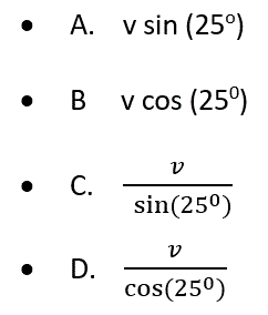 9&10. A cannonball is fired at a velocity v from a cannon, at an angle of 250 to the horizontal. |