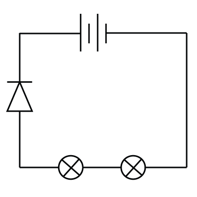 | A student is experimenting with identical bulbs and 6V cells. The bulb in this circuit below has a current of 2A passing through it when connected to a single 6V cell as shown.