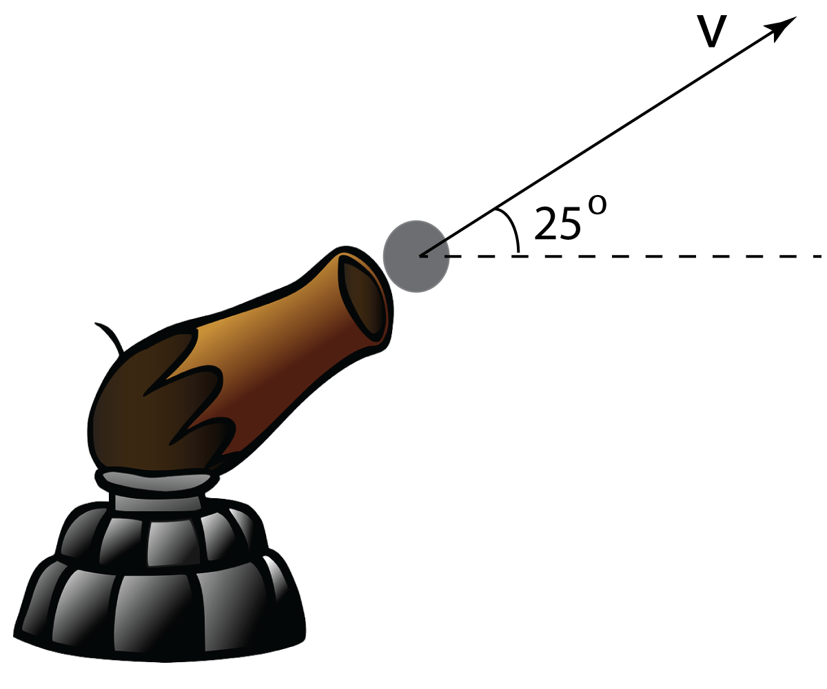 9&10. A cannonball is fired at a velocity v from a cannon, at an angle of 250 to the horizontal. |